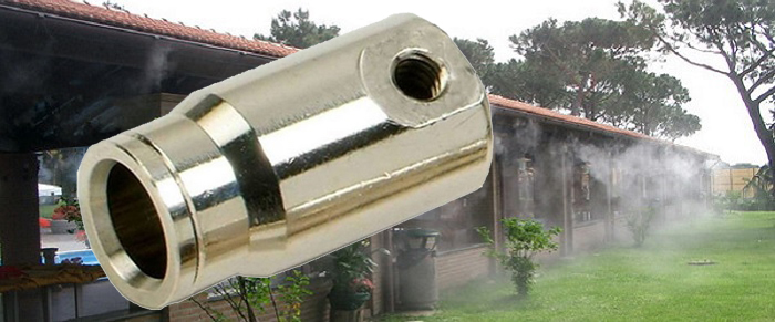 A nagy nyomású T-idom a profi párásító rendszer egyik alkatrésze. Az idom két vége gyorscsatlakozós, csúszócsatlakozós és 3/8″ col (9,52 mm átmérőjű) cső csatlakoztatására alkalmas. Az egyenes kialakítású hengeres idomtest közepén – az idomra merőlegesen – két 10/24″ col BM (belső menet) van, ide tekerhetjük be a ködfúvókákat. A fúvókák egymással 180 fokos szöget zárnak […]