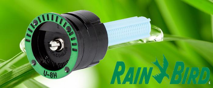 Rain Bird U-8H Fix 180 Fokos Szögű Spray fúvóka. A Rain Bird kettős kiömlésű, két fúvókanyílású spray fúvóka szöge fix 180Fok , szórási távolsága 25%-al csökkenthető a fúvóka tetején található csavar segítségével. A dupla fúvókarés következtében a szórófej sokkal egyenletesebben öntözi közvetlen környezetét is. A belső menetes esőztető fúvóka Uni Spray és 1800-as […]