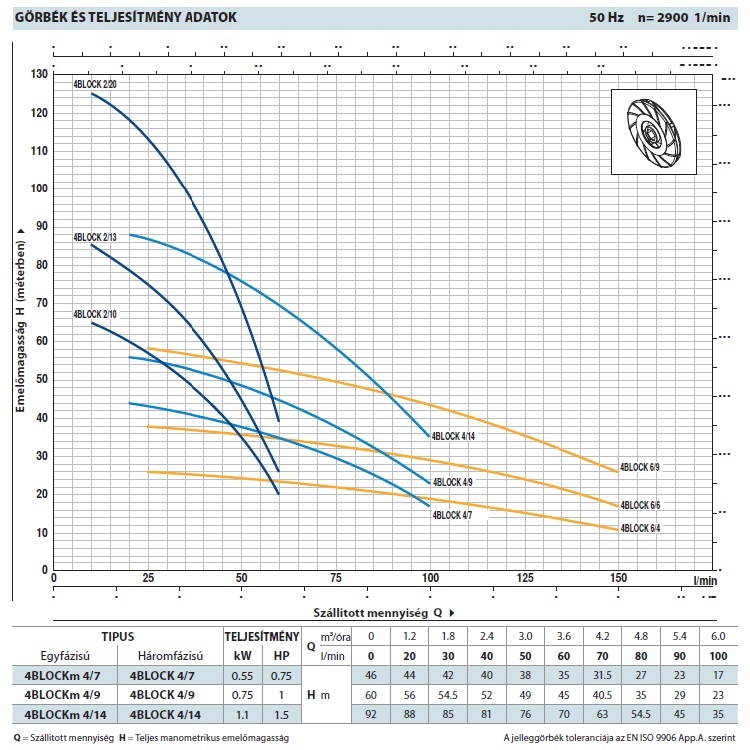 Pedrollo 4BLOCKm 4/7 csőszivattyú műszaki adatok: