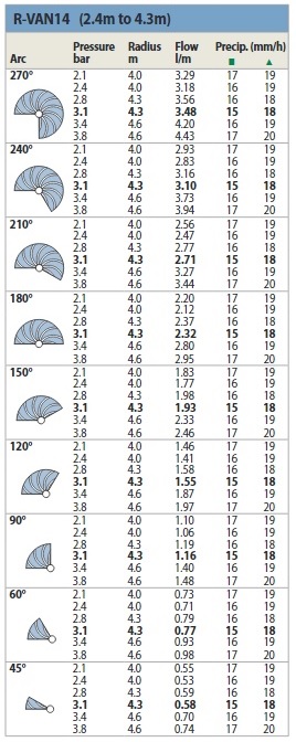 Rain Bird R-VAN-8-14 Állítható Rotátor – Rotary Fúvóka 45-270 Fok. A Rain Bird rotátor fúvóka egyenletes és lassú öntözésű, háromszor kevesebb vizet fogyaszt, mint a spray fúvókák, így egy öntözési körön belül több szórófej helyezhető el, azáltal olcsóbb lehet az öntözőrendszer bekerülési költsége.